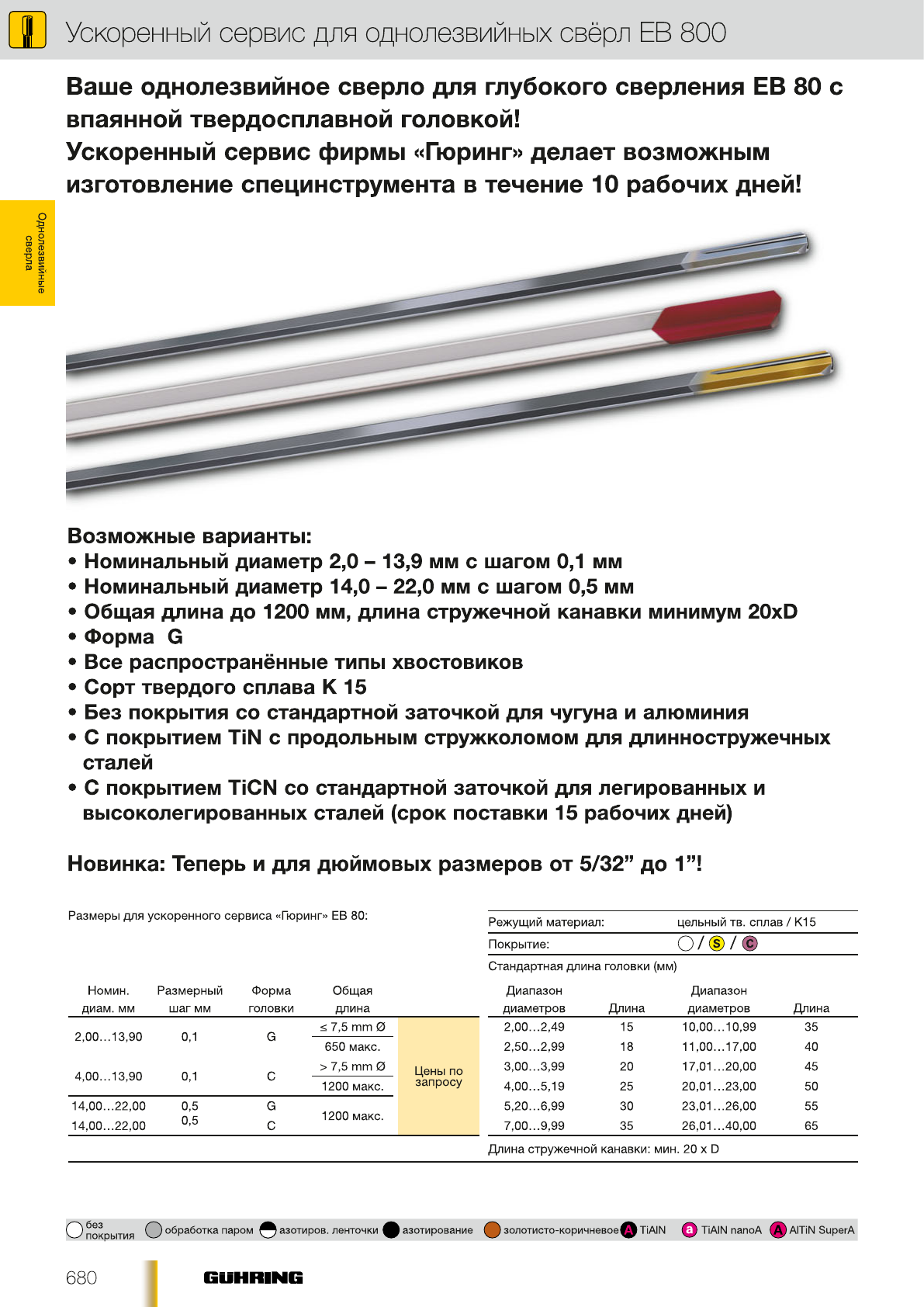 СПИРАЛЬНЫЕ СВЁРЛА ДЛЯ ГЛУБОКОГО СВЕРЛЕНИЯ