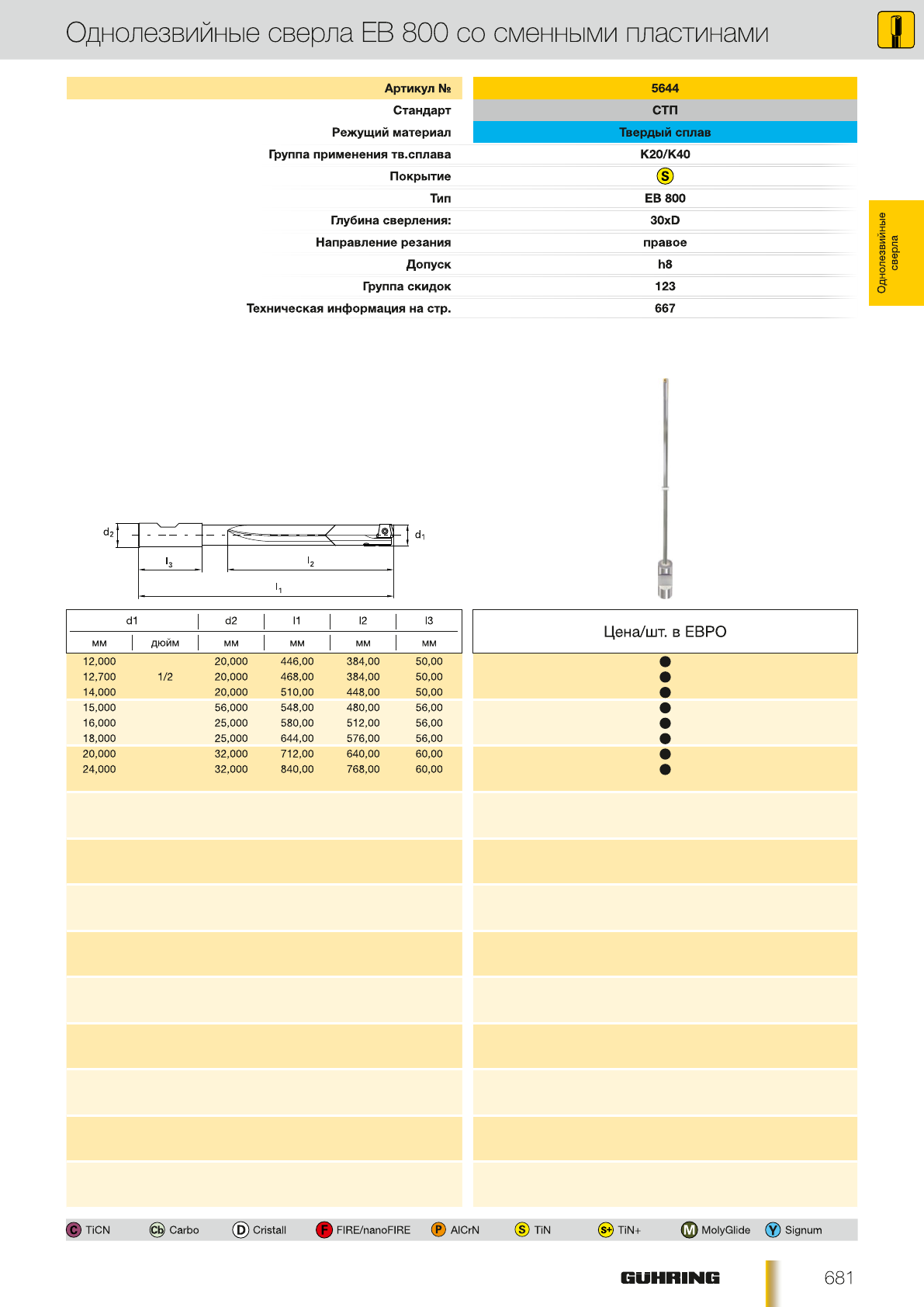 Спиральные сверла для глубокого сверления из цельного твердого сплава