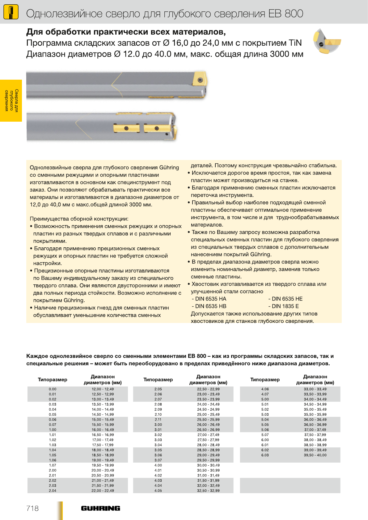 для многих прочих видов применения таких, как глубокие отверстия