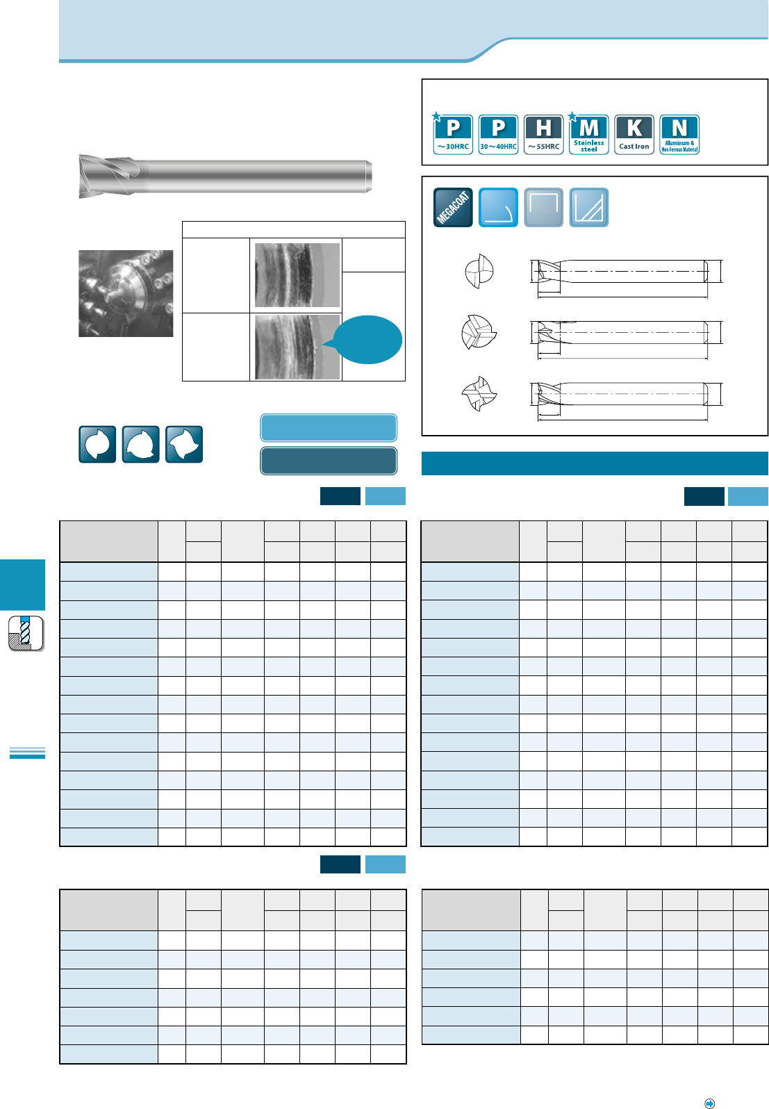 * Machining with coolant is recommended for stainless steel, titanium alloys and heat-resistant alloys.